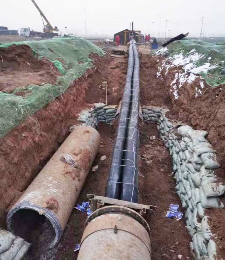 管U型內襯修復是將外徑等于或略小于待修復管道內徑的HDPE襯管,通過專用U形壓縮設備壓縮變形后,使襯管截面縮小至原管道截面的40-60%。在牽引力的作用下拖到待修復管道內部。襯管到位后,用空氣壓縮機向PE管內部進行打壓,PE管在壓力的作用下恢復成圓形,與外管道內壁貼合,形成復合管。